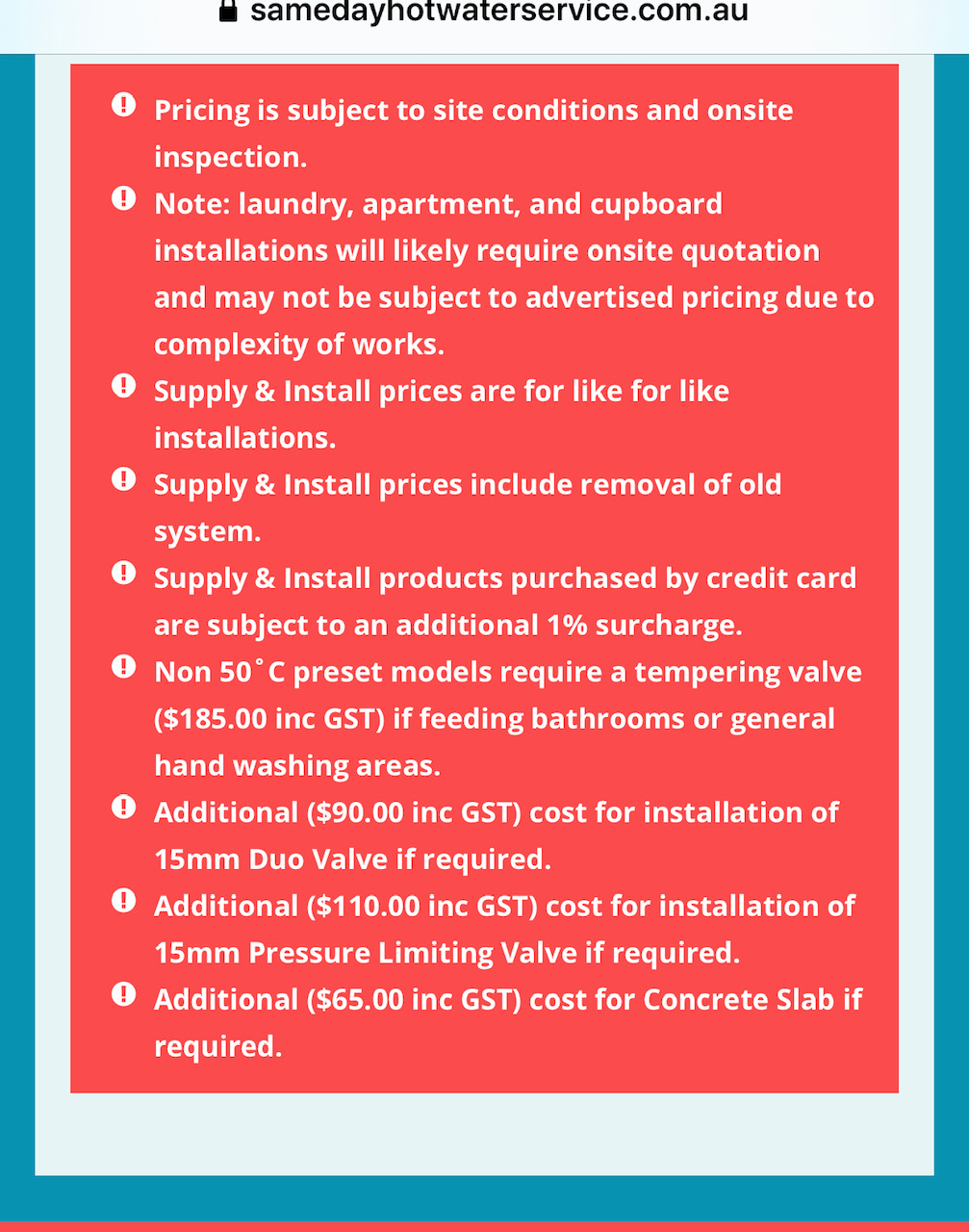 We have done some homework for you on the supply and installation of electric hot water heaters, between brands there is not a great deal of difference, all systems manufactured in Australia have to be made to Australian standards, the main things to consider is the way that manufacture’s attitude is for after sales and warranty should that ever be required, spare parts availability and whether they differ from readily available parts. Below we have set out Brisbane Hot Water Heaters and 2 other competitors in the Brisbane and Sunshine Coast area for hot water systems when providing the exact same service and all the products that are required to be installed as be QBCC regulations for Queensland and AS3500 Australian standard
